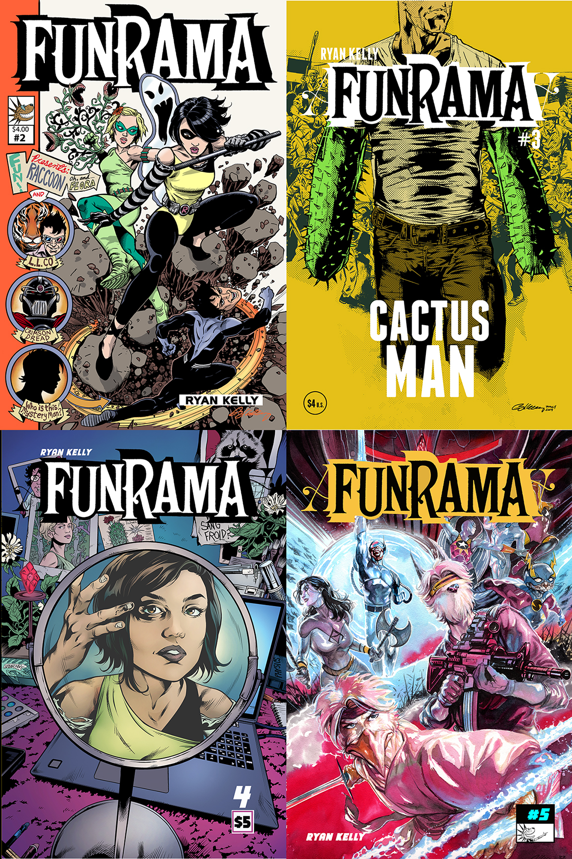 You get Issues 3-5 of Ryan Kelly's sci-fi Superhero ongoing series! Color cover and Black and white interiors. Issue #2 is 24 story pages. Issue #3 is 24 story pages. Issue #4 is 32 pages. Issue #5 is 24 pages.