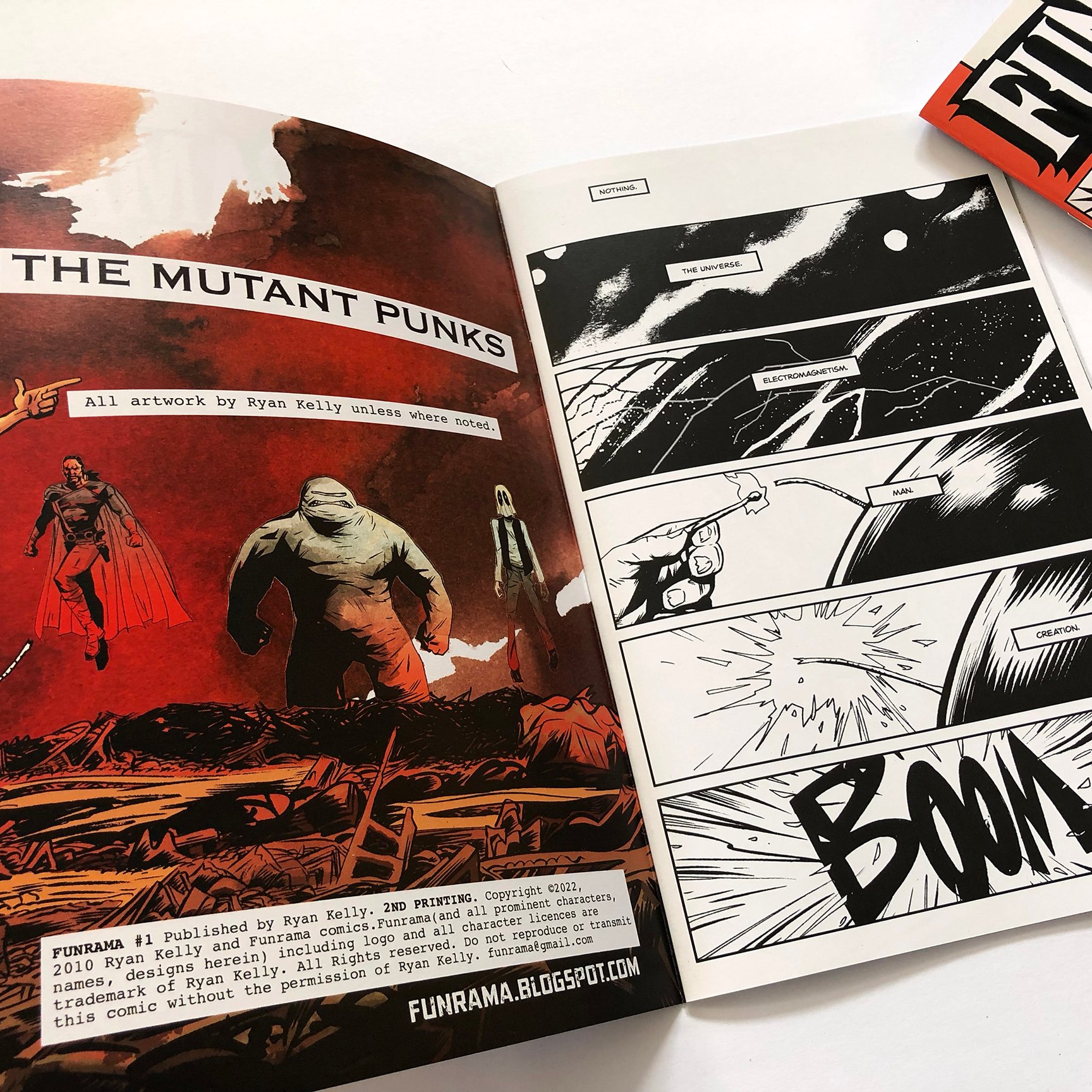 FUNRAMA #1 2nd Printing (2010, 20 b&w pages, $4 cover price) This is the book that kicks off the Funrama series, featuring the Mutant Punks! This 2nd printing is printed on luscious glossy paper and it does NOT feature the pin-up art gallery from the original book.