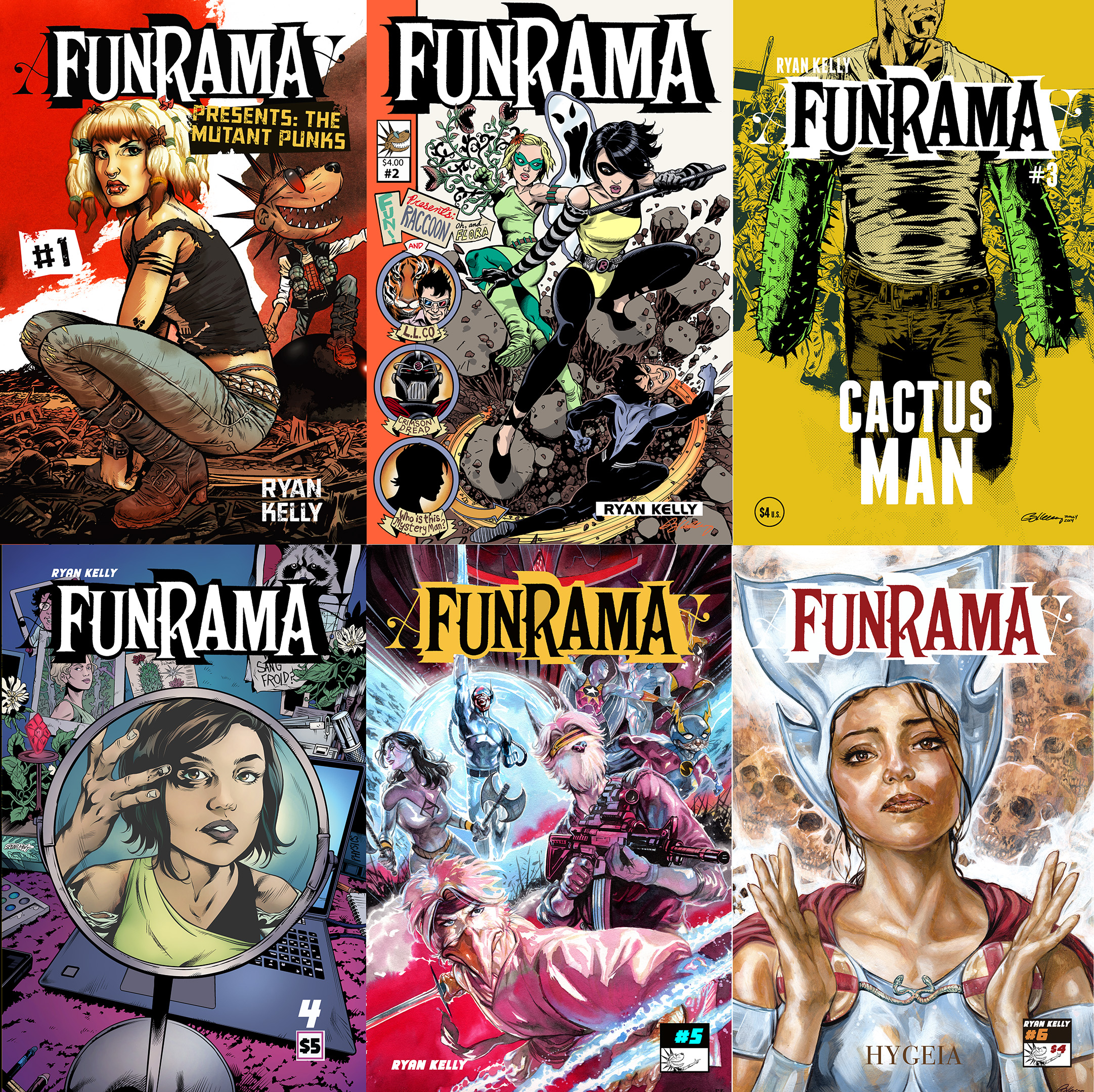 Funrama # 5 of Ryan Kelly's sci-fi Superhero ongoing series! Color cover and Black and white interiors. Issue 5 is 24 pages.