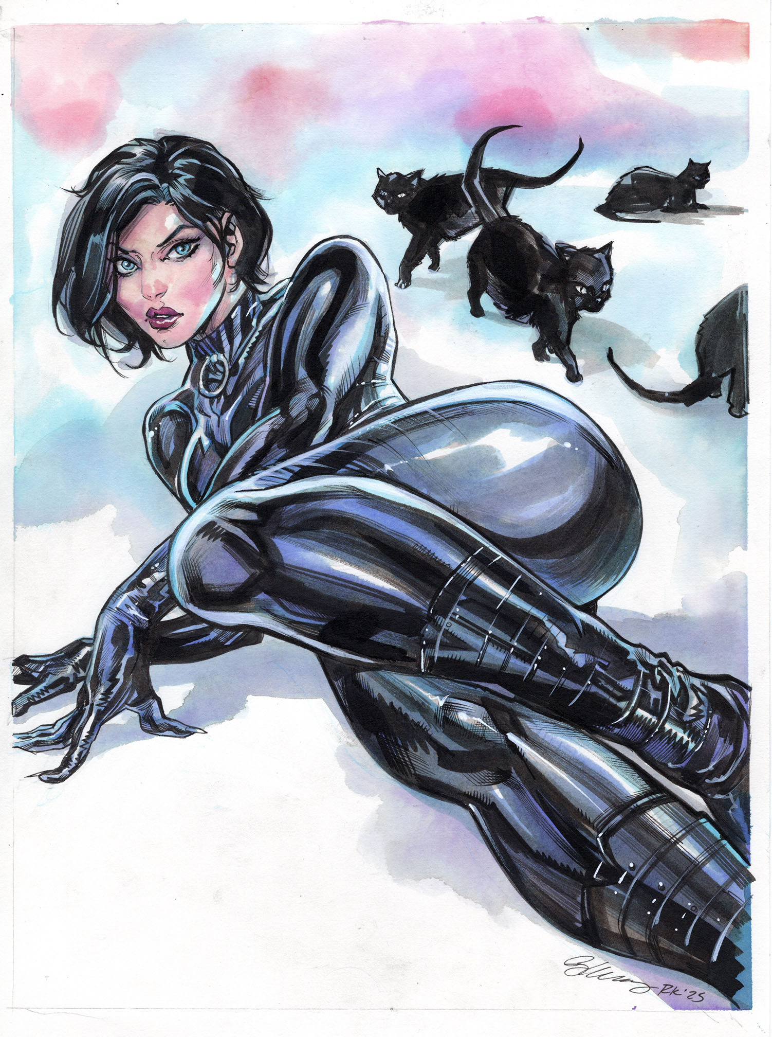 Catwoman Unmasked, 9X12 inch color sketch . inks and watercolors on watercolor paper.